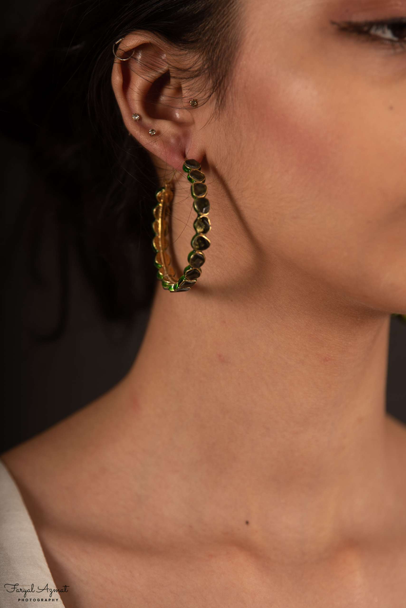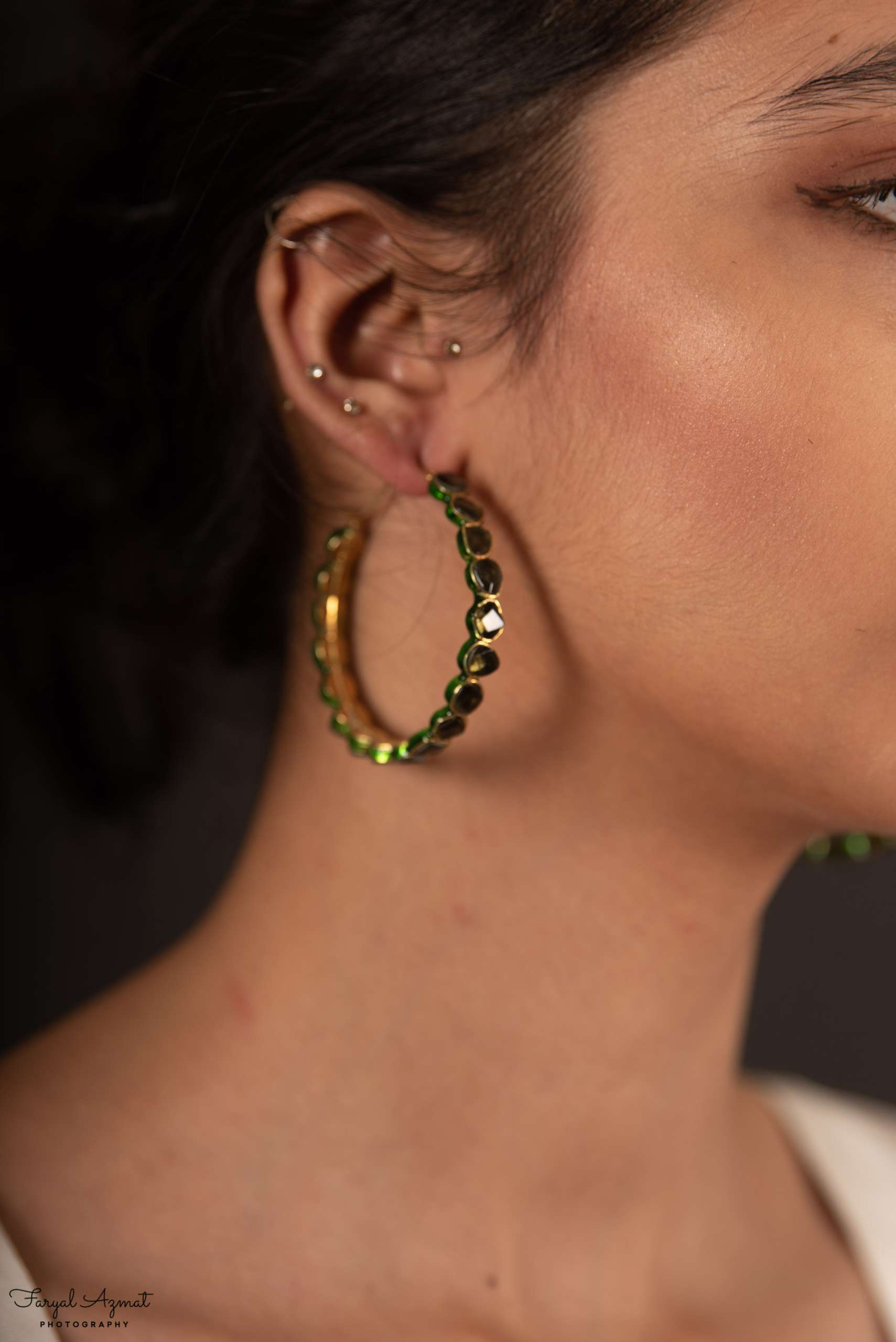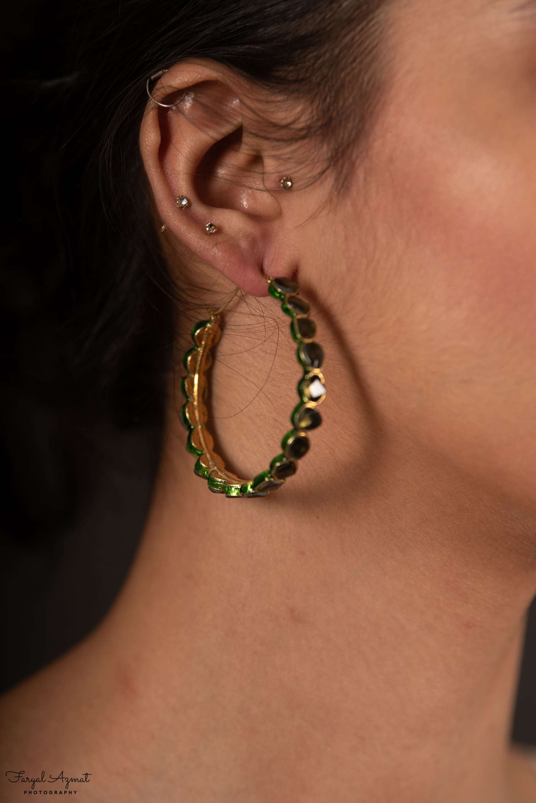 Hoops have always been in fashion. Love these gold plated hoops, with black stones and a dash of green.