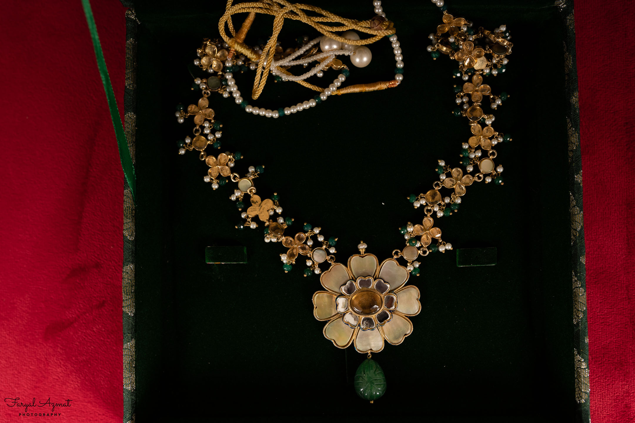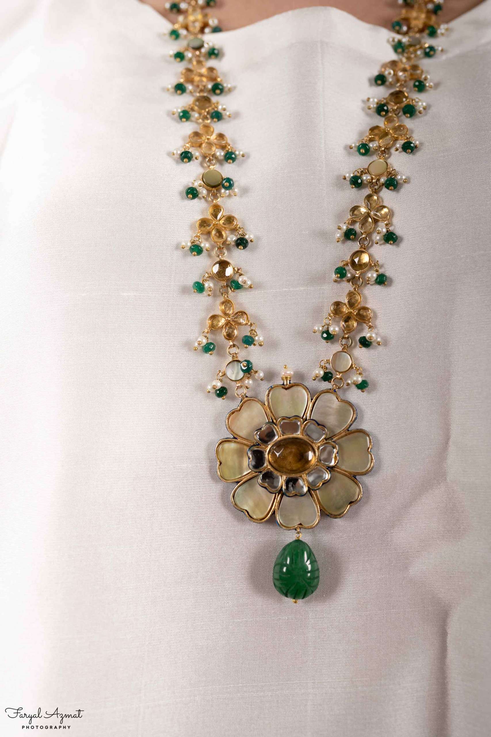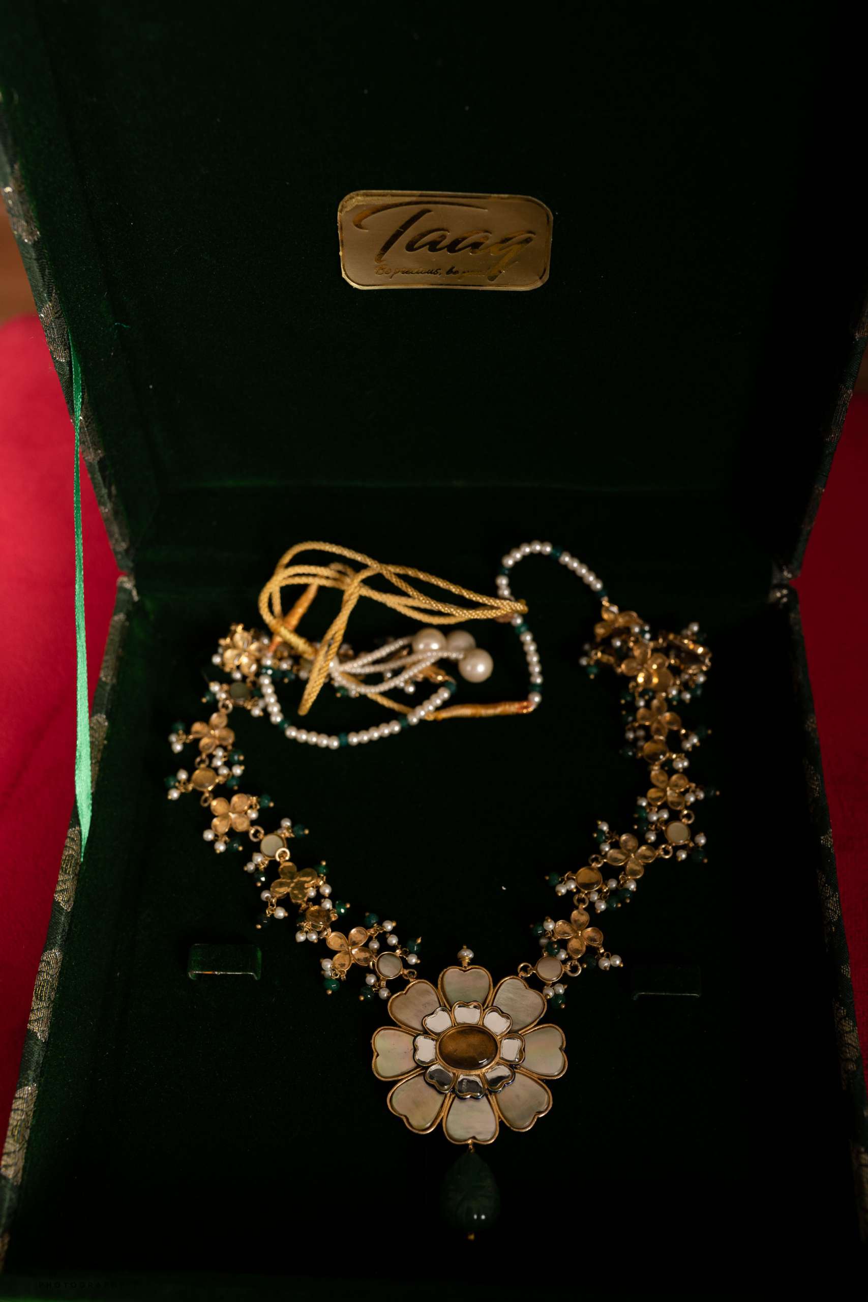 studded with Emeralds, Pearls and Sapphire. The necklace