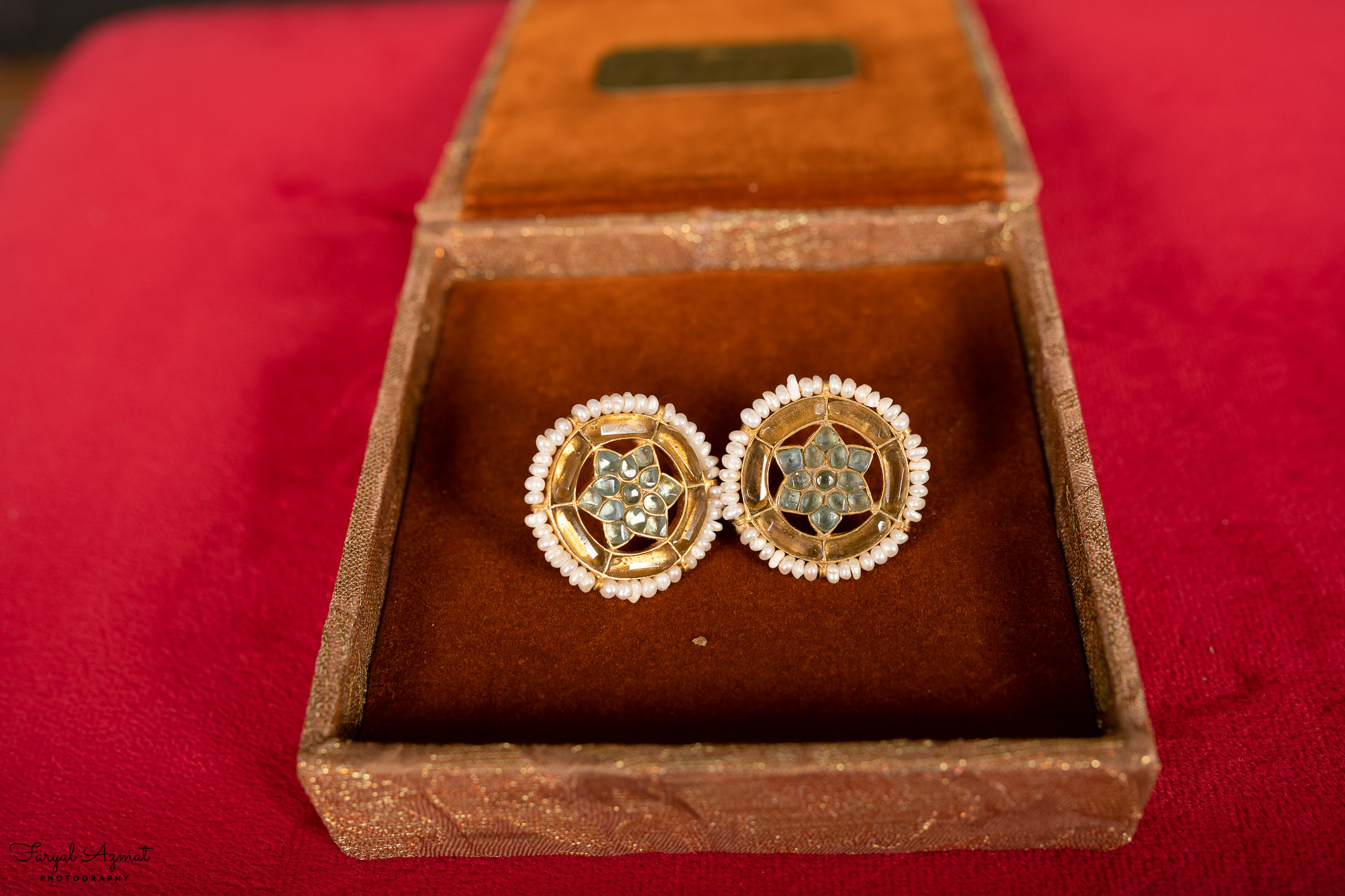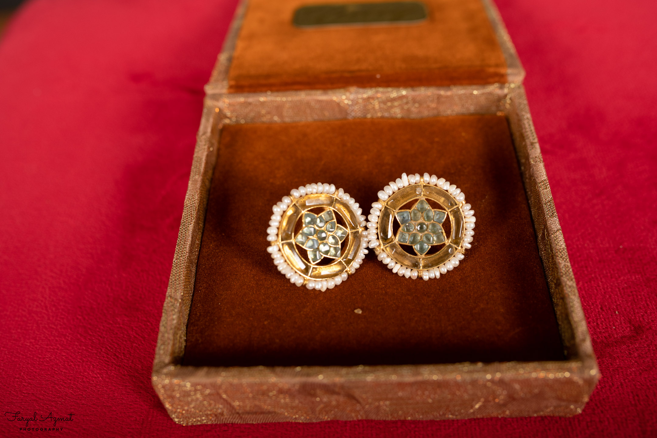 sapphire, edged with pearls