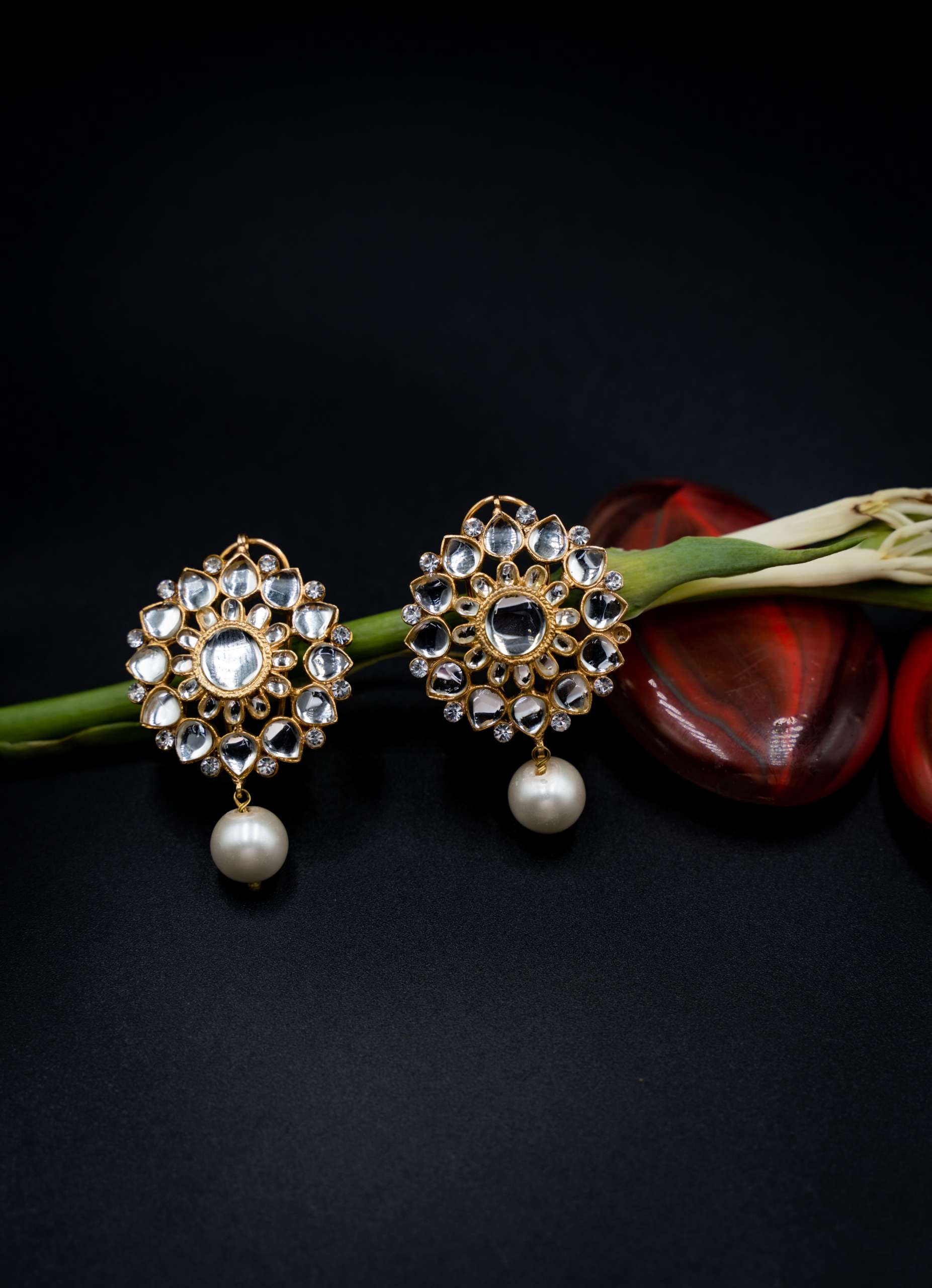 Rock Crystal Earrings with Pearl drop
